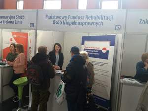 Stoisko nasze cieszyło się dużym zainteresowaniem w szczególności osób bezrobotnych mających orzeczenie o stopniu niepełnosprawności . Najwięcej pytań dotyczyło (art. 26 a-c ustawy)dofinansowania do wynagrodzeń, jak również refundacji składek (art. 25 a i c ustawy).