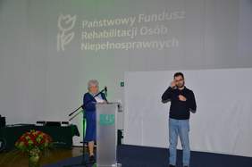 Podczas uroczystej gali w siedzibie ZUS nagrody wręczyli Dorota Habich - p.o Prezesa Zarządu PFRON, Tomasz Maruszewski - Zastępca Prezesa Zarządu PFRON ds. Finansowych oraz Przewodnicząca kapituły prof. nadzw. dr hab. n. med. Anna Wilmowska-Pietruszyńska.