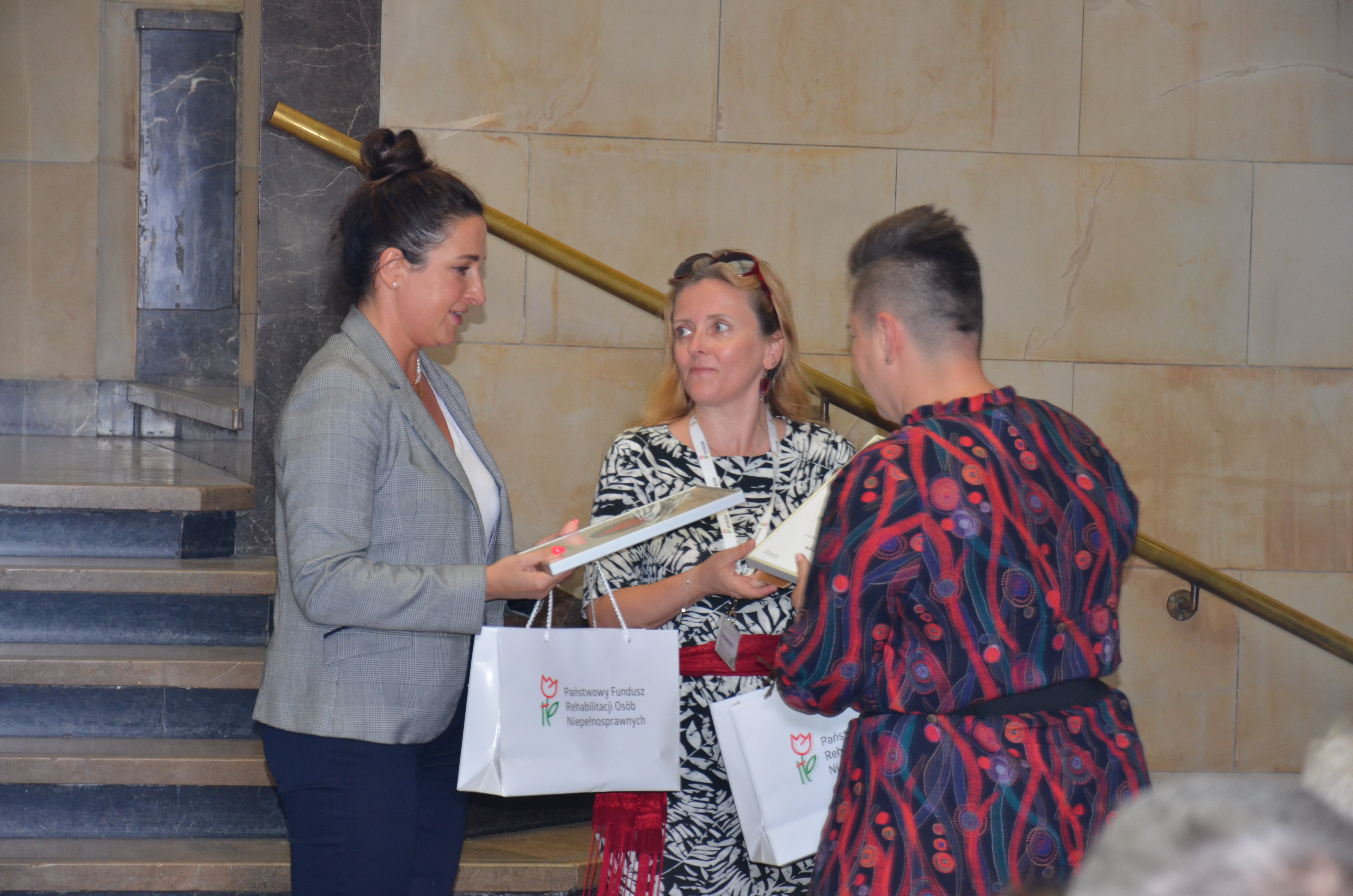 Nagrody wręczyli: Małgorzata Wójcik – zastępca dyrektora Biura Pełnomocnika Rządu ds. Osób Niepełnosprawnych oraz członkowie Zarządu Państwowego Funduszu Rehabilitacji Osób Niepełnosprawnych, prezes Krzysztof Michałkiewicz i wiceprezes Dorota Habich.