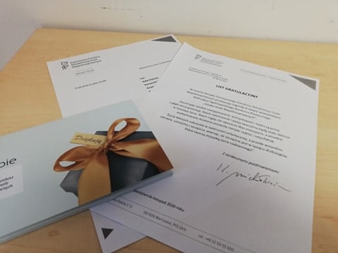 Poza nagrodami w ramach konkursu organizowanego przez ŚDS, kierownik Rafał Deptuła wręczył w imieniu Dyrektora Oddziału Lubuskiego Państwowego Funduszu Rehabilitacji Osób Niepełnosprawnych Andrzeja Gonia nagrodę i list gratulacyjny dla Kai Matuszek za udział w etapie wojewódzkim Ogólnopolskiego Konkursu Plastycznego ,,Sztuka Osób Niepełnosprawnych” i zdobycie Wyróżnienia w kategorii Tkanina i Aplikacja.