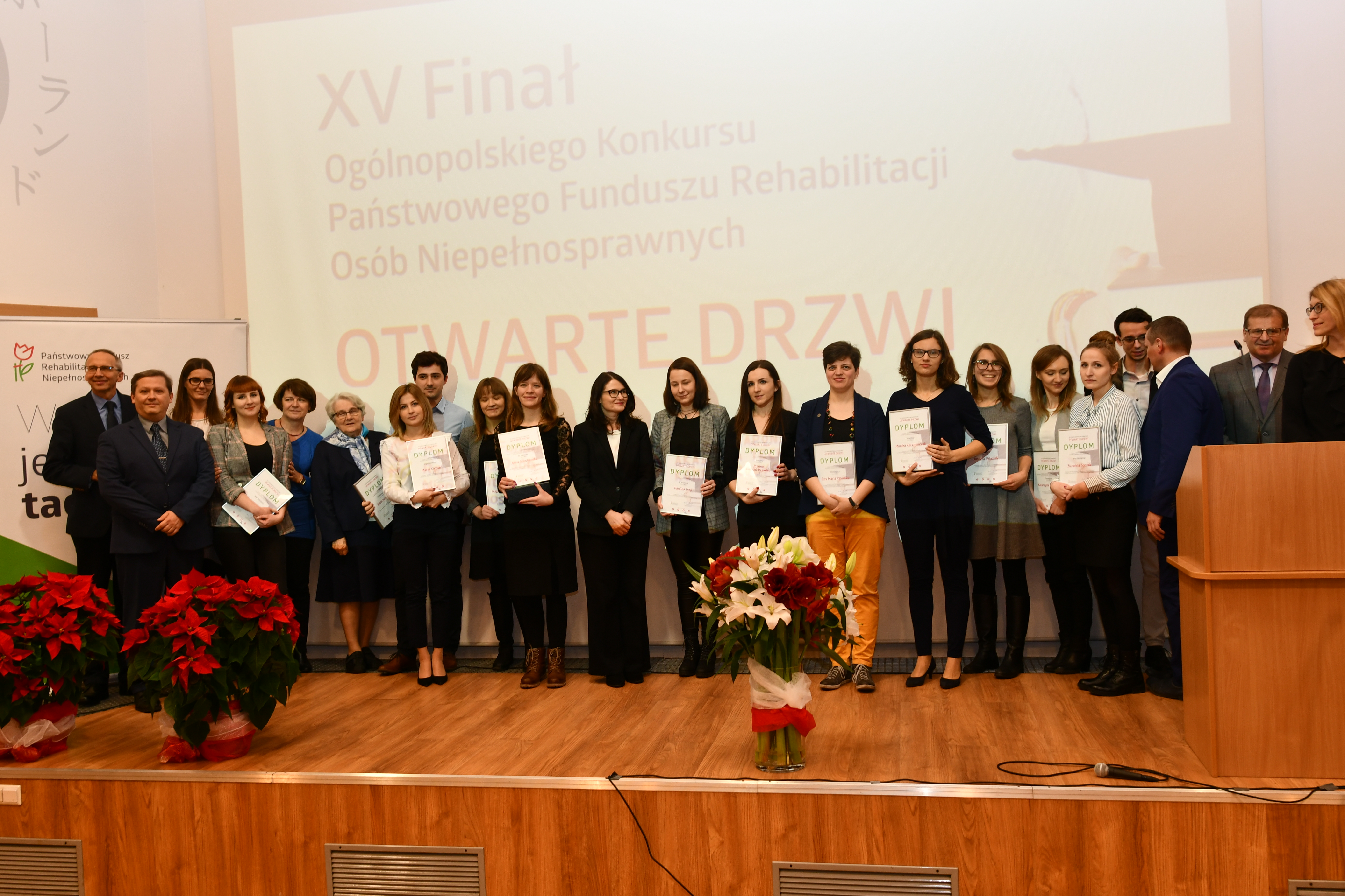 W uroczystości wzięli udział laureaci XV edycji konkursu, promotorzy nagrodzonych prac magisterskich i doktorskich, przedstawiciele komisji konkursowej a także przedstawiciele środowiska naukowego i organizacji pozarządowych. W Auli PJATK obecni byli również dr. hab. Jerzy Paweł Nowacki – Rektor Polsko-Japońskiej Akademii Technik Komputerowych oraz Michał Pelczarski – Dyrektor Biura Pełnomocnika Rządu ds. Osób Niepełnosprawnych.