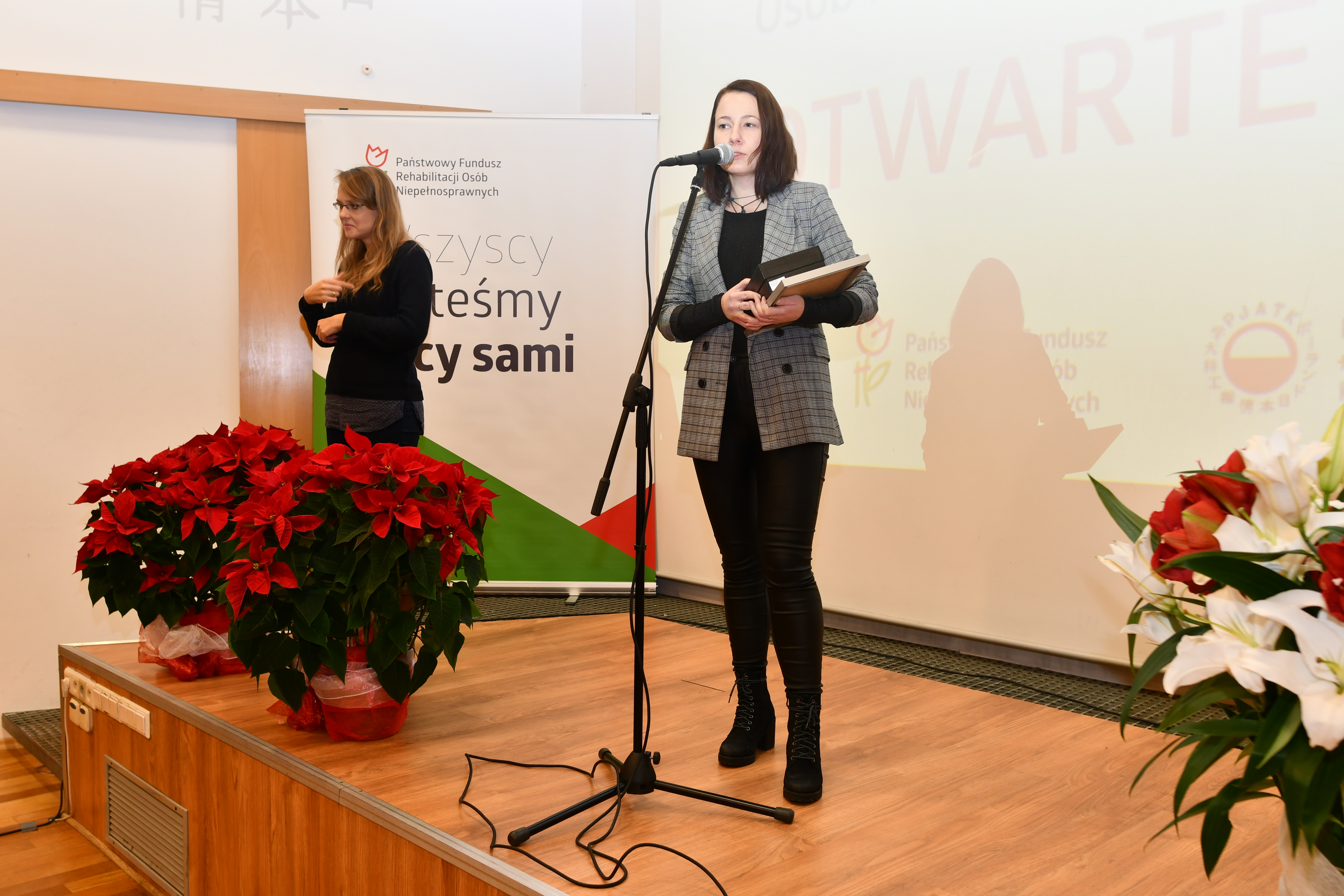 Podczas uroczystej gali nagrody wręczyli Dorota Habich - p.o Prezesa Zarządu PFRON, oraz Przewodnicząca kapituły prof. nadzw. dr hab. n. med. Anna Wilmowska-Pietruszyńska.