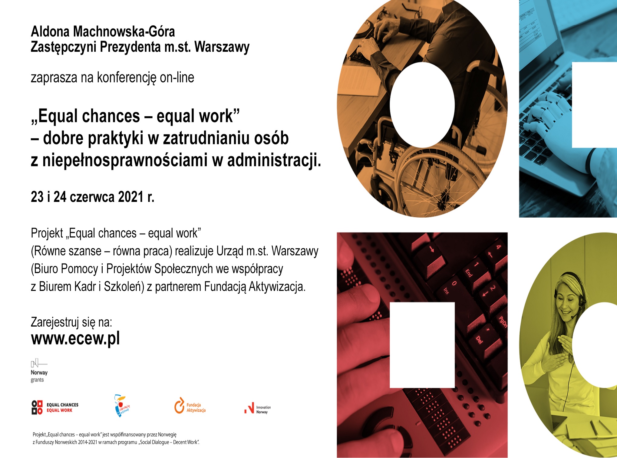Fundacja Aktywizacja zaprasza na konferencję on-line „Equal chances – equal work” – dobre praktyki w zatrudnianiu osób z niepełnosprawnościami w administracji, która odbędzie się 23 i 24 czerwca 2021 r.