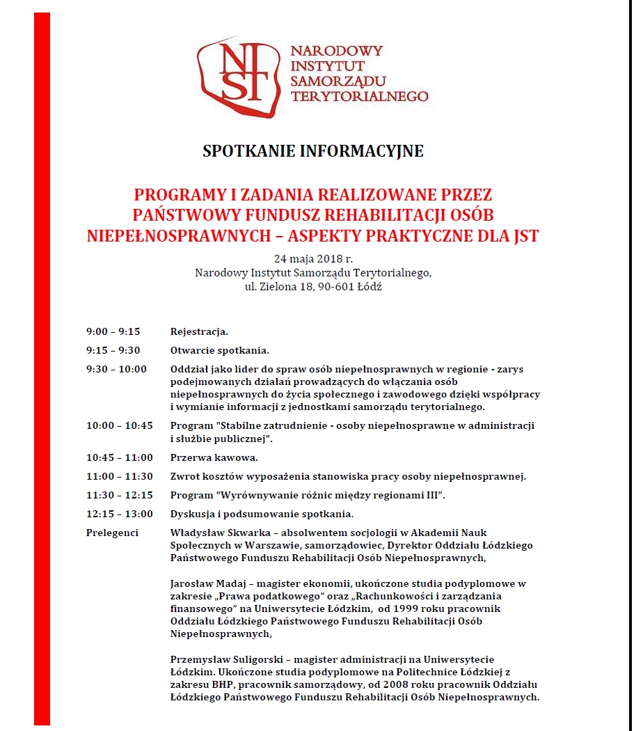 Szkolenie odbędzie się 24 maja 2018 r. w godz. 9:15-13:00 w Narodowym Instytucie Samorządu Terytorialnego w Łodzi przy ul. Zielonej 18.