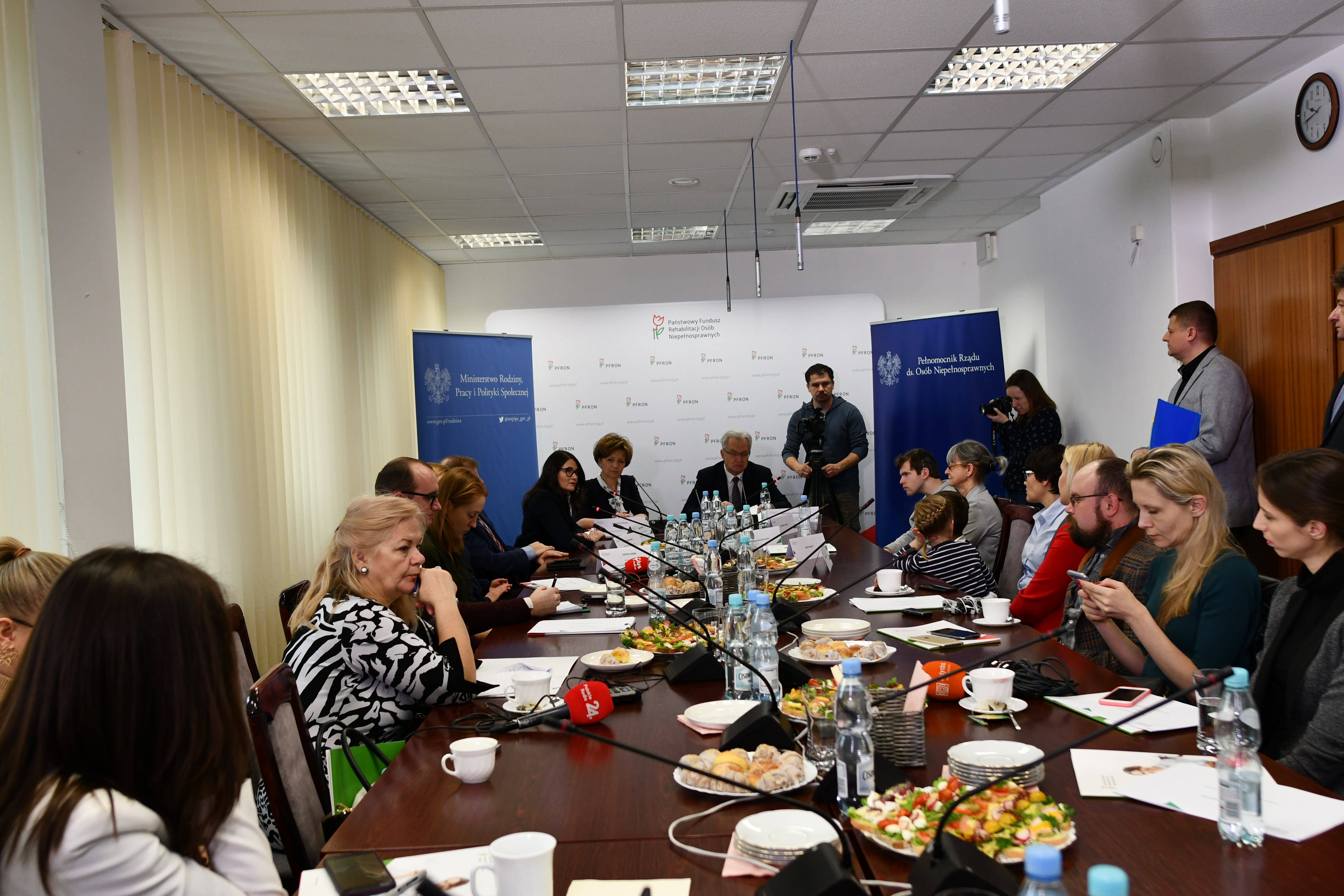 8 lutego 2019 r. w głównej siedzibie Państwowego Funduszu Rehabilitacji Osób Niepełnosprawnych odbyło się śniadanie prasowe na temat nowych zadań programowych PFRON z udziałem: Ministra Krzysztofa Michałkiewicza, Prezes PFRON Marleny Maląg, Zastępcy Prezesa PFRON ds. Programowych Doroty Habich oraz Zastępcy Prezesa PFRON ds. Finansowych Tomasza Maruszewskiego.