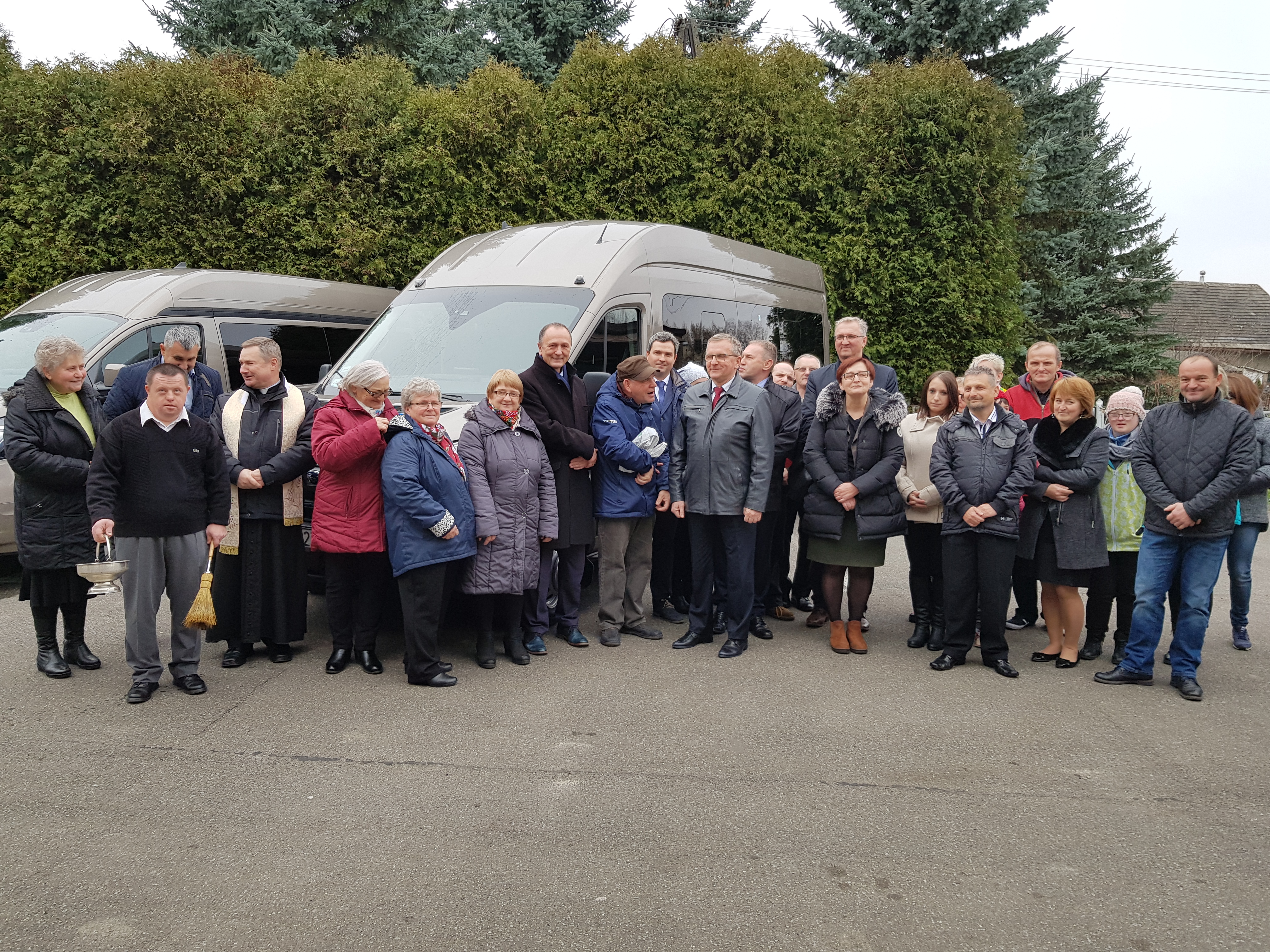 Dzisiaj miała miejsce uroczystość poświęcenia dwóch nowych pojazdów 9-cio i 18-to osobowego, które będą służyć Uczestnikom WTZ.