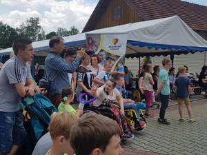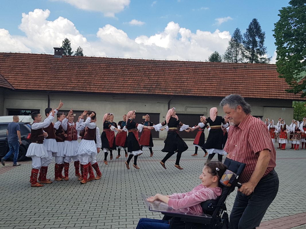 Dzień Dziecka to piękny termin na świętowanie - 20-lecie działalności obchodziło w sobotę Stowarzyszenie na Rzecz Osób z Niepełnosprawnością „Przystań ” im. Jana Pawła II z Tymbarku. Jubileusz rozpoczęła Msza św. w miejscowym kościele. Po skłaniającej do refleksji homilii przyszedł czas na podziękowania, gratulacje, zabawę i piknik rodzinny. Okolicznościowy grawerton na ręce Danuty Dawiec, Prezes Stowarzyszenia przekazała Marta Mordarska, Dyrektor Małopolskiego Oddziału PFRON. Wśród znamienitych Gości była także dr Wanda Półtawska, lokalni działacze i wójtowie. Nie zabrakło atrakcji dla Najmłodszych – malowanie buziek, balony, dmuchane zamki to tylko niektóre z nich. Szczególną atrakcję stanowił występ macedońskiego zespołu dziecięco- młodzieżowego „Bojmija". Podstawowym zadaniem grupy „Bojmija” jest edukacja regionalna poprzez taniec, muzykę i śpiew. Energiczne rytmy i imponujące układy taneczne sprawiły, że licznie zgromadzona publiczność z entuzjazmem przyjęła młodych artystów w pięknych, bogato zdobionych strojach.