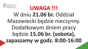 Zapraszamy w dniu 15 czerwca w godz. 8:00 - 16:00