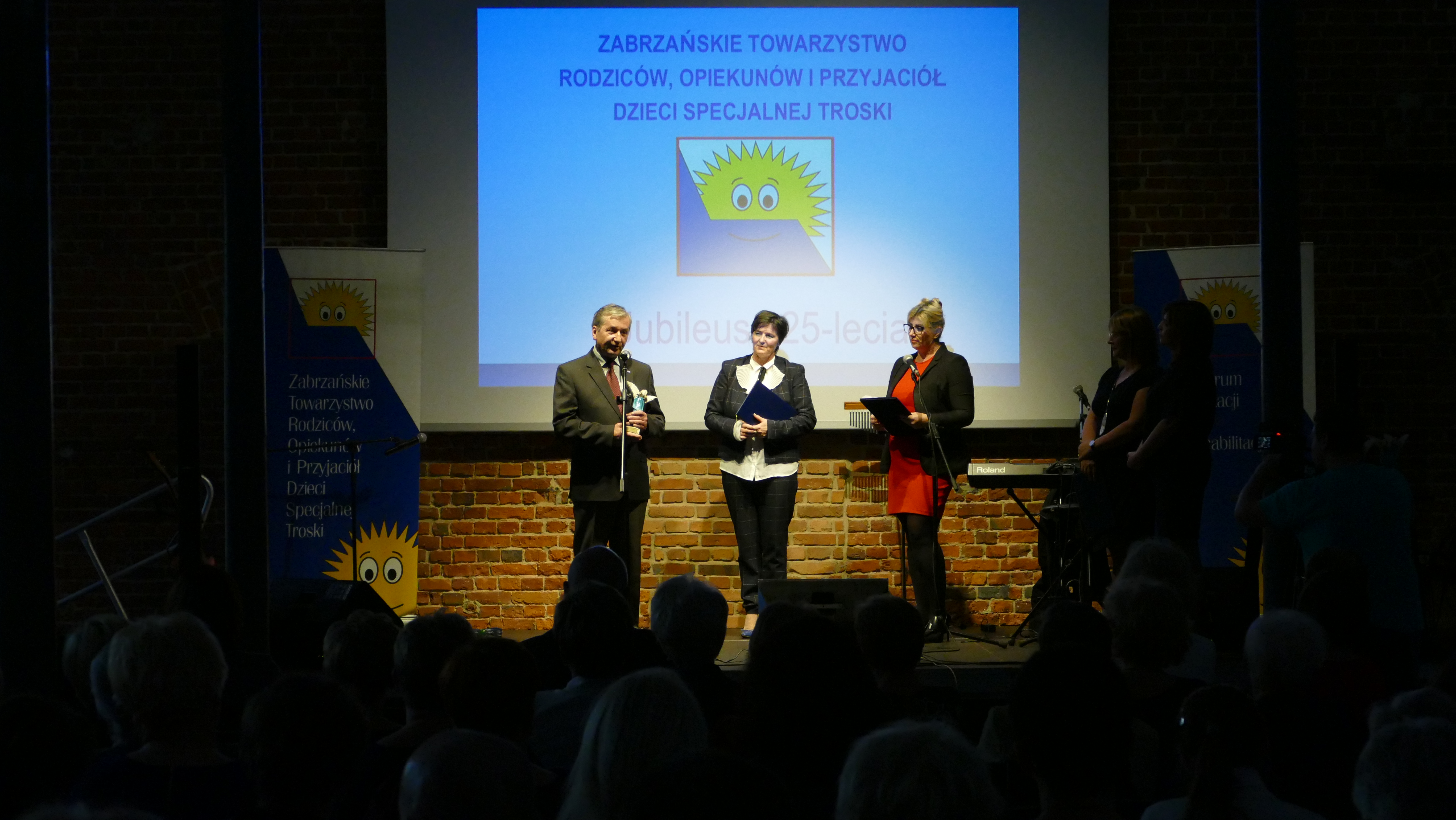 Podziękowania i statuetki „ Uśmiech Dziecka” za wrażliwość na potrzeby osób z niepełnosprawnością zostały wręczone podczas Jubileuszu XXV lecia Zabrzańskiego Towarzystwa Rodziców, Opiekunów i Przyjaciół Dzieci Specjalnej Troski, który odbył się 17 października 2017 r w Łaźni Łańcuszkowej Sztolni Królowa Luiza w Zabrzu.