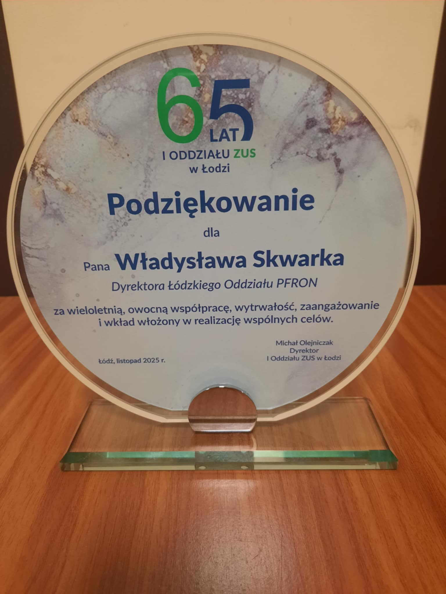 Podczas wydarzenia wręczano symboliczne podziękowania za wieloletnią współpracę, a wśród wyróżnionych znalazł się także dyrektor Łódzkiego Oddziału PFRON Władysław Skwarka, który otrzymał pamiątkową statuetkę. To miły gest, który pokazuje, jak ważna i cenna jest wspólna praca na rzecz osób z niepełnosprawnościami.