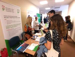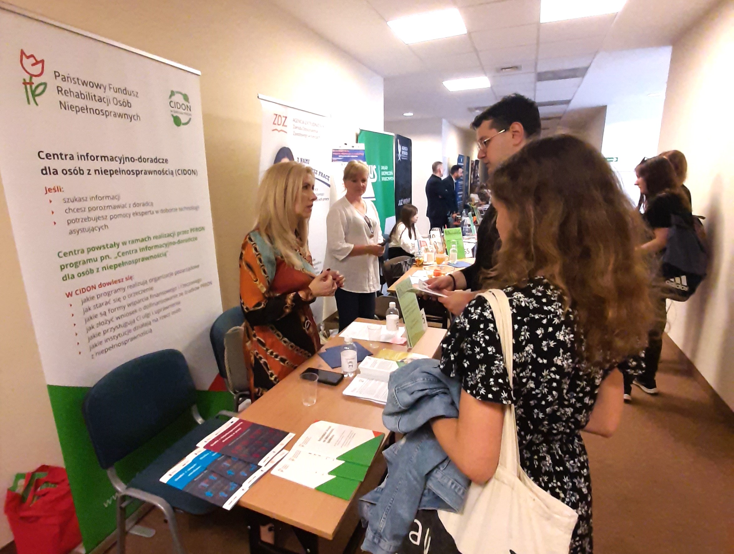 6 czerwca br. w budynku „G” Uniwersytetu Jana Kochanowskiego w Kielcach odbyły się kolejne Targi Akademickie. W Targach wzięło udział ponad 50 wystawców. Studenci mogli porozmawiać między innymi z pracodawcami, przedstawicielami Miejskiego Urzędu Pracy w Kielcach, Ochotniczych Hufców Pracy, a także Zakładu Doskonalenia Zawodowego. Na Targach swoje stanowisko miał także Oddział Świętokrzyski PFRON, którego przedstawicielki: Agnieszka Matałowska oraz Katarzyna Curyło, udzielały informacji dotyczących pomocy osobom z niepełnosprawnościami, aktywizacji zawodowej, a także reklamowały najnowsze projekty Funduszu.