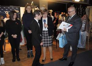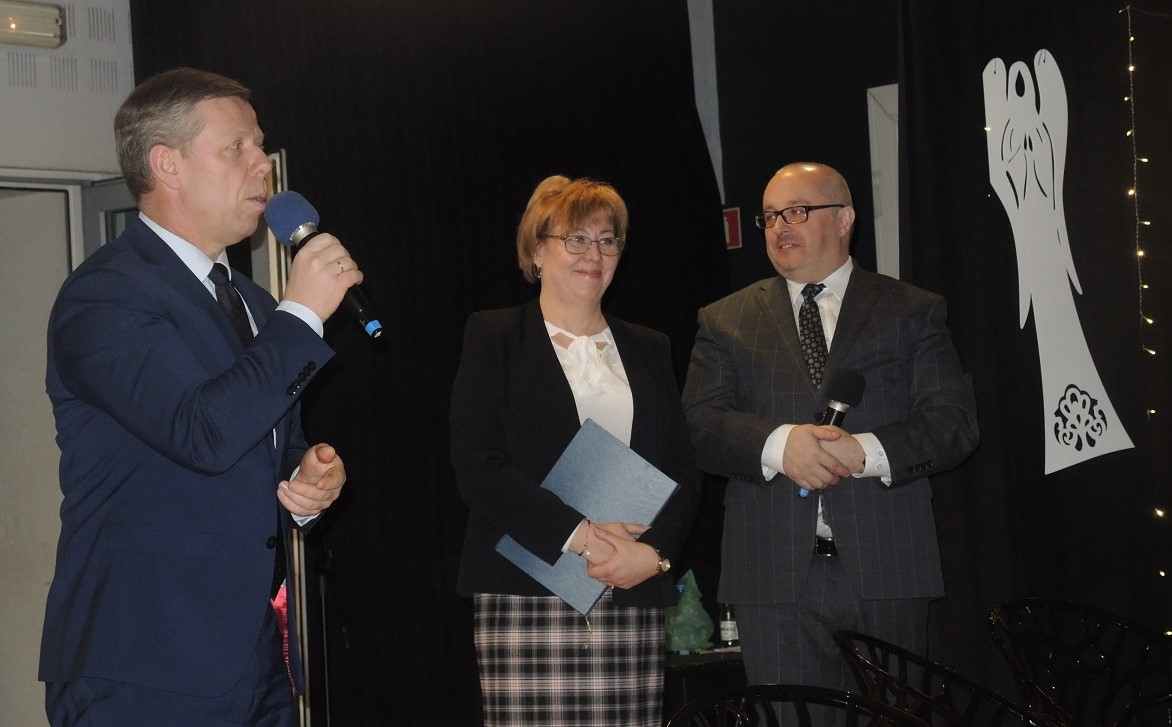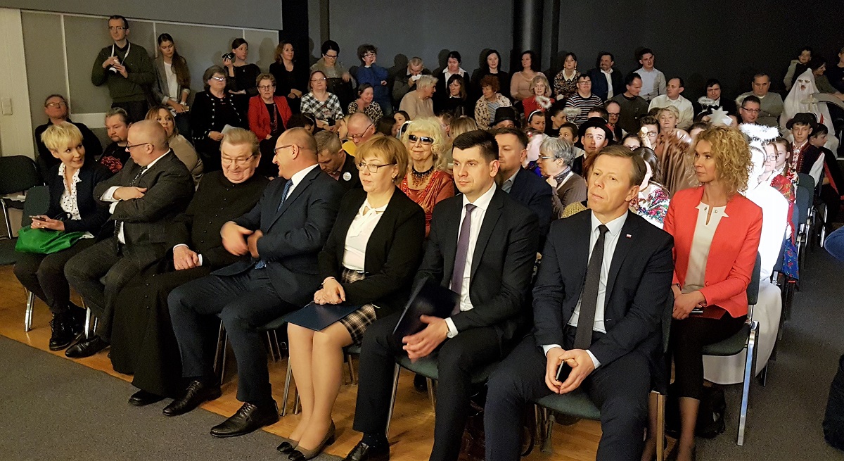 Elżbieta Rafalska - Minister Rodziny, Pracy i Polityki Społecznej oraz Witold Kozłowski - Marszałek Województwa Małopolskiego na ręce dyrektor Marty Mordarskiej złożyli gratulacje i podziękowania za organizację koncertu "Kolędujmy z Aniołami".