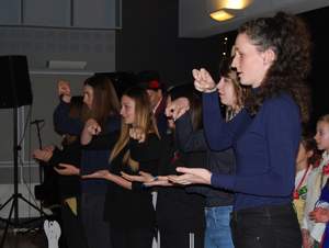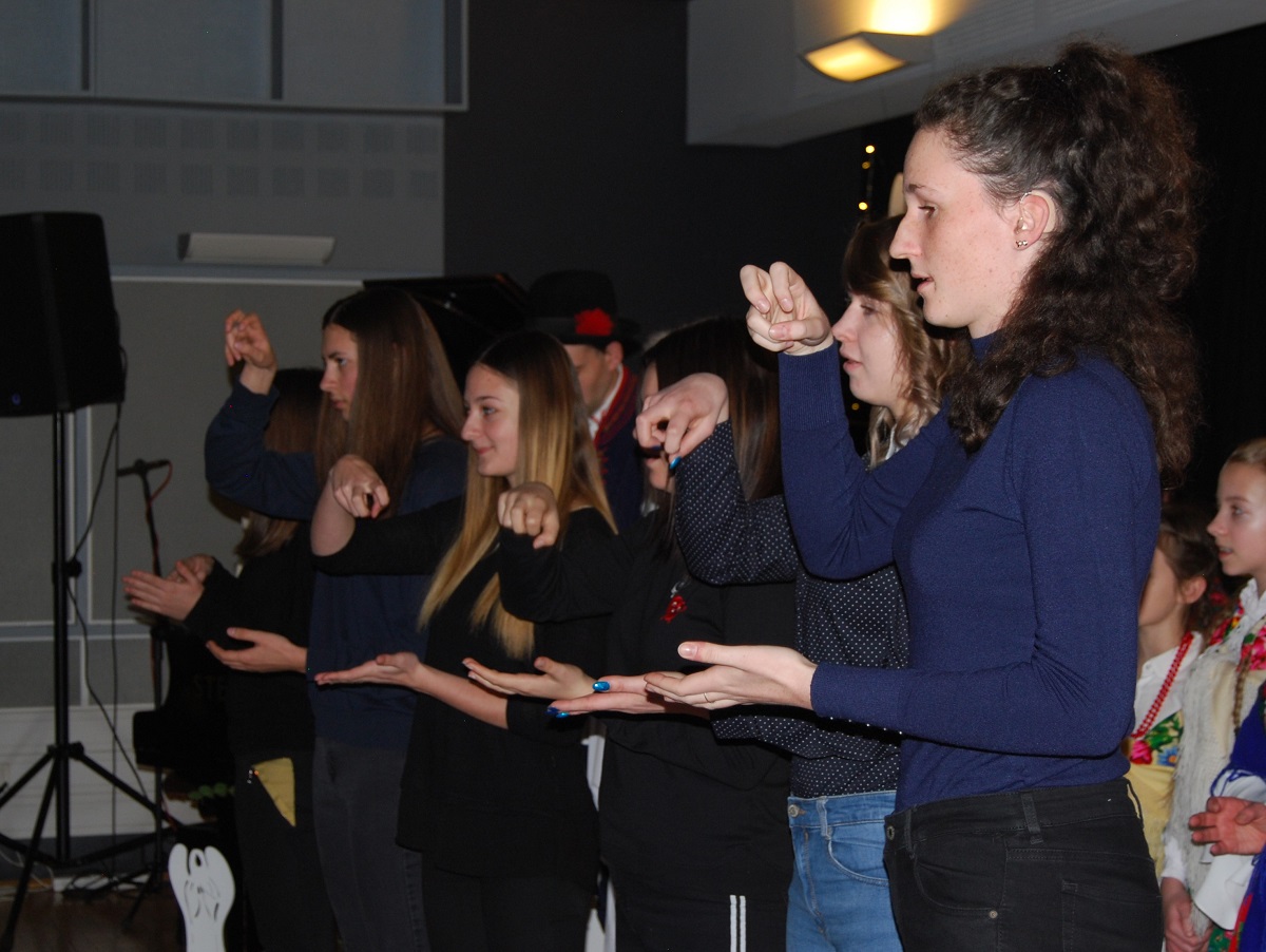 Podczas wspólnego kolędowania razem z muzykami ze Stowarzyszenia „Gniazdo” wystąpili wychowankowie Ośrodka Szkolno – Wychowawczego dla Niesłyszących im. Janusza Korczaka w Krakowie. Młodzież zaprezentowała interpretację kolęd „Cicha noc” i „Dzisiaj w Betlejem” w Polskim Języku Migowym.