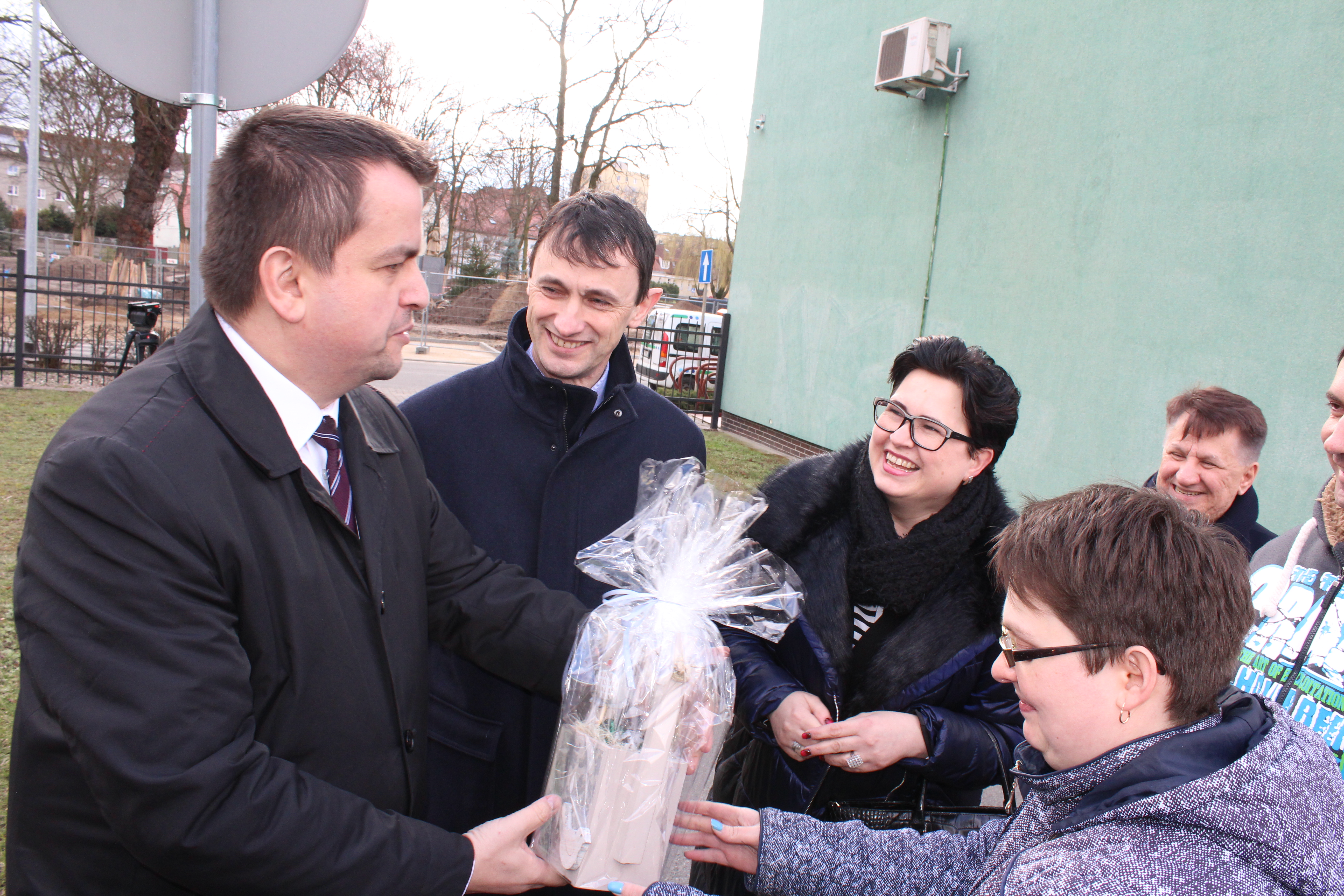 Przede wszystkim jednak w uroczystości udział wzięli także niepełnosprawni uczestnicy WTZ, którzy wyrażali ogromną radość z nowego auta, którym będą się poruszali. Przygotowali także okolicznościowy upominek dla Dyrektora A. Gonia.