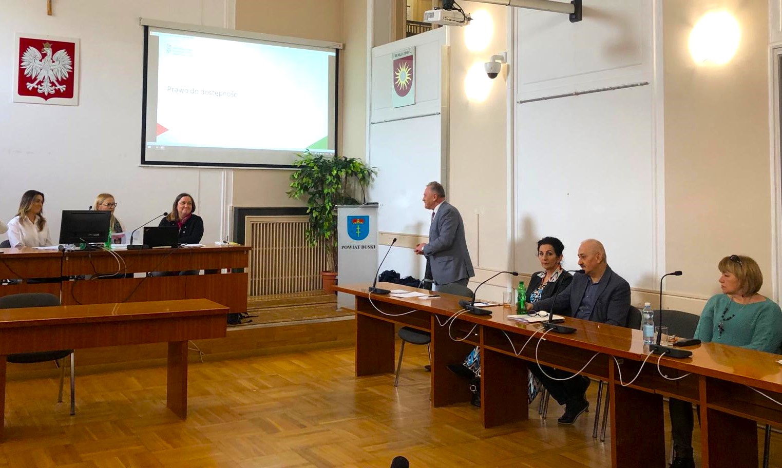 27 lutego br. w sali konferencyjnej Powiatu Buskiego odbyła się konferencja: „Budowanie świadomości o prawie do dostępności”. Spotkanie poprowadziły przedstawicielki Oddziału Świętokrzyskiego PFRON Marzena Kozieł i Katarzyna Curyło, oraz Magdalena Matusik z Departamentu Dostępności PFRON w Warszawie. Magdalena Matusik przedstawiła efekty przeprowadzonych już postępowań skargowych, a Marzena Kozieł przybliżyła w jaki sposób korzystać z prawa do dostępności, mówiła też m.in. o programie „Dostępna przestrzeń publiczna”. Katarzyna Curyło zaś przekazała informacje o programie „Wypożyczalnia technologii wspomagających dla osób z niepełnosprawnością” i płynących korzyści z wypożyczenia tych technologii. W spotkaniu wzięli udział m.in.: starosta powiatu buskiego Jerzy Kolarz, wicestarosta i zarazem koordynator do spraw dostępności Stanisław Klimczak, osoby reprezentujące jednostki powiatu buskiego (m.in. szkoły, WTZ oraz PUP), reprezentanci Powiatowej Społecznej Rady do Spraw Osób Niepełnosprawnych, przedstawiciele organizacji pozarządowych a także dyrektor PCPR wraz z pracownikami, którzy byli koordynatorami spotkania.