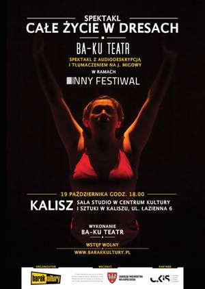 Spektakl teatralny pt.: „Całe życie w dresach” z audiodeskrypcją i tłumaczeniem na język migowy będzie można obejrzeć 19 października 2018 r. o godz. 18:00 w Sali Studio Centrum Kultury i Sztuki w Kaliszu, przy ul. Łaziennej 6. Bezpłatny udział w monodramie dedykowanym osobom z niepełnosprawnością słuchu możliwy jest dzięki współpracy Fundacji Barak Kultury (organizatora wydarzenia) z Centrum Kultury i Sztuki w Kaliszu. Przedstawienie skierowane jest do widzów od 16 roku życia.