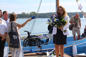Podsumowaniem wszystkich działań projektu był dzisiejszy uroczysty chrzest jachtu INTEGRACJA nad Zalewem Zemborzyckim w Lublinie. Matką chrzestną jachtu została Anna Walczak Dyrektor Zespołu Ośrodków Wsparcia w Lublinie. W uroczystości uczestniczyła Iwona Osmałek pracownik Oddziału Lubelskiego PFRON.