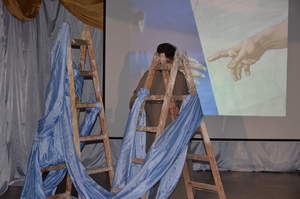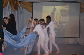 Centralnym punktem spotkania był występ wychowanków Ośrodka o tematyce pasyjnej. Tegoroczne przedstawienie ukazywało w alegoryczny, przemawiający do serc widzów sposób - walkę dobra ze złem, na tle wydarzeń biblijnych oraz tragicznych faktów z losów współczesnego świata, podkreślało potrzebę obecności Chrystusa Zmartwychwstałego w naszym życiu, tak aby znalazło się w nim miejsce na tryumf prawdziwego dobra. Występ wzbudził wiele emocji i refleksji oraz aplauz publiczności. Po zabraniu głosu przez zaproszonych gości oraz złożeniu świątecznych życzeń wszyscy udali się do jadalni na smakowite, wielkanocne śniadanie, na którym nie zabrakło jajek, żurku, chrzanu i wielkanocnej babki. Pomimo trudnych dla oświaty chwil udało się złapać chwilę radości i wspólnoty, podkreśloną wiosennym słońcem i rozkwitająca wokół przyrodą.