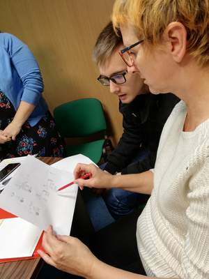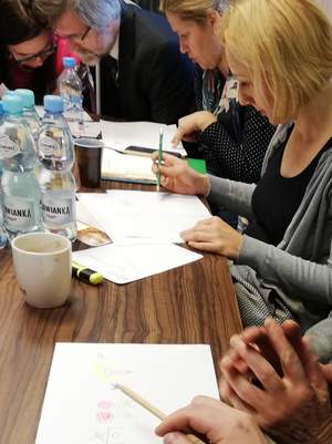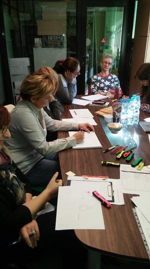 W części warsztatowej uczestnicy zmagali się z ćwiczeniem związanym z tworzeniem projektów nieszablonowo, było twórczo i kolorowo. Następnie zostały przedstawione dokumenty związane z konkursem, m. in. Karta oceny merytorycznej, Wytyczne w zakresie kwalifikowalności kosztów w ramach art. 36 ustawy. Było dużo pytań i wątpliwości, które próbowaliśmy wyjaśnić.