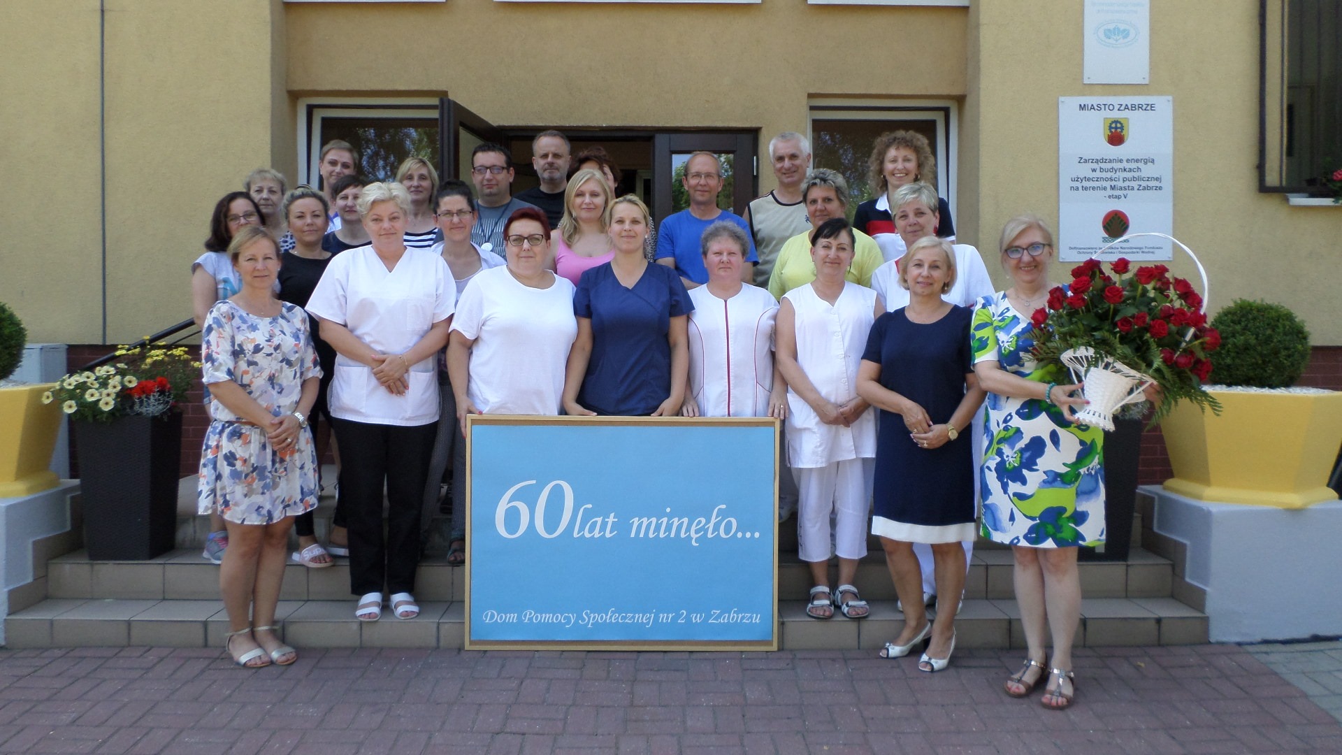 60 lat działalności świętował Dom Pomocy Społecznej nr 2 w Zabrzu 11 czerwca br. W uroczystości wzięli udział przedstawiciele Urzędu Miasta w Zabrzu, Oddziału Śląskiego PFRON, radni, dyrektorzy miejskich jednostek oraz mieszkańcy i personel z zaprzyjaźnionych domów pomocy społecznej. Gości przywitała dyrektor DPS Małgorzata Drzewosieska. List gratulacyjny wręczył m.in. dyrektor Oddziału Śląskiego PFRON Jan Wroński.