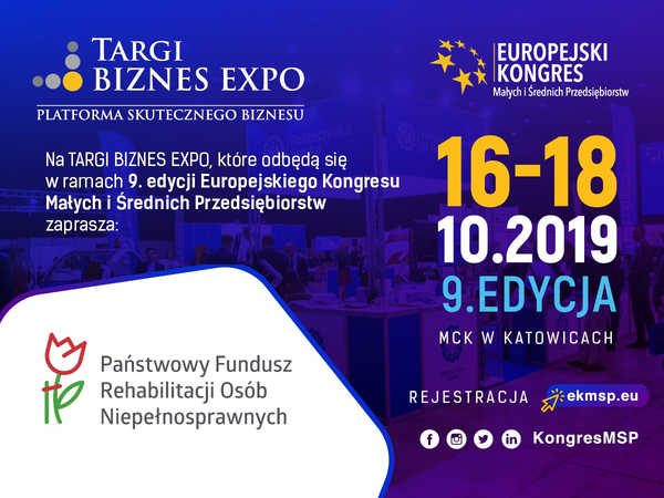 Kongresowi jak co roku towarzyszą Targi Biznesu Expo 2019. Pracownicy Oddziału Śląskiego PFRON będą obecni na stoisku eksperckim w piątek 18 października. Zaprezentują przedsiębiorcom m.in. założenia projektu pn. „Wypracowanie i upowszechnianie, we współpracy z partnerami społecznymi, modelu wsparcia osób niepełnosprawnych w środowisku pracy”. Pokażą narzędzia, z których pracodawcy mogą samodzielnie korzystać w celu ustalenia kosztów i korzyści związanych z zatrudnieniem pracownika z niepełnosprawnością oraz określenia czy zakład pracy i jego otoczenie zewnętrzne jest dostępne dla osób z niepełnosprawnością ruchową, słuchową, wzrokową i intelektualną. Zainteresowani będą mogli poznać lepiej potrzeby pracowników z niepełnosprawnościami, testując przeznaczone do tego specjalne gogle vr.
