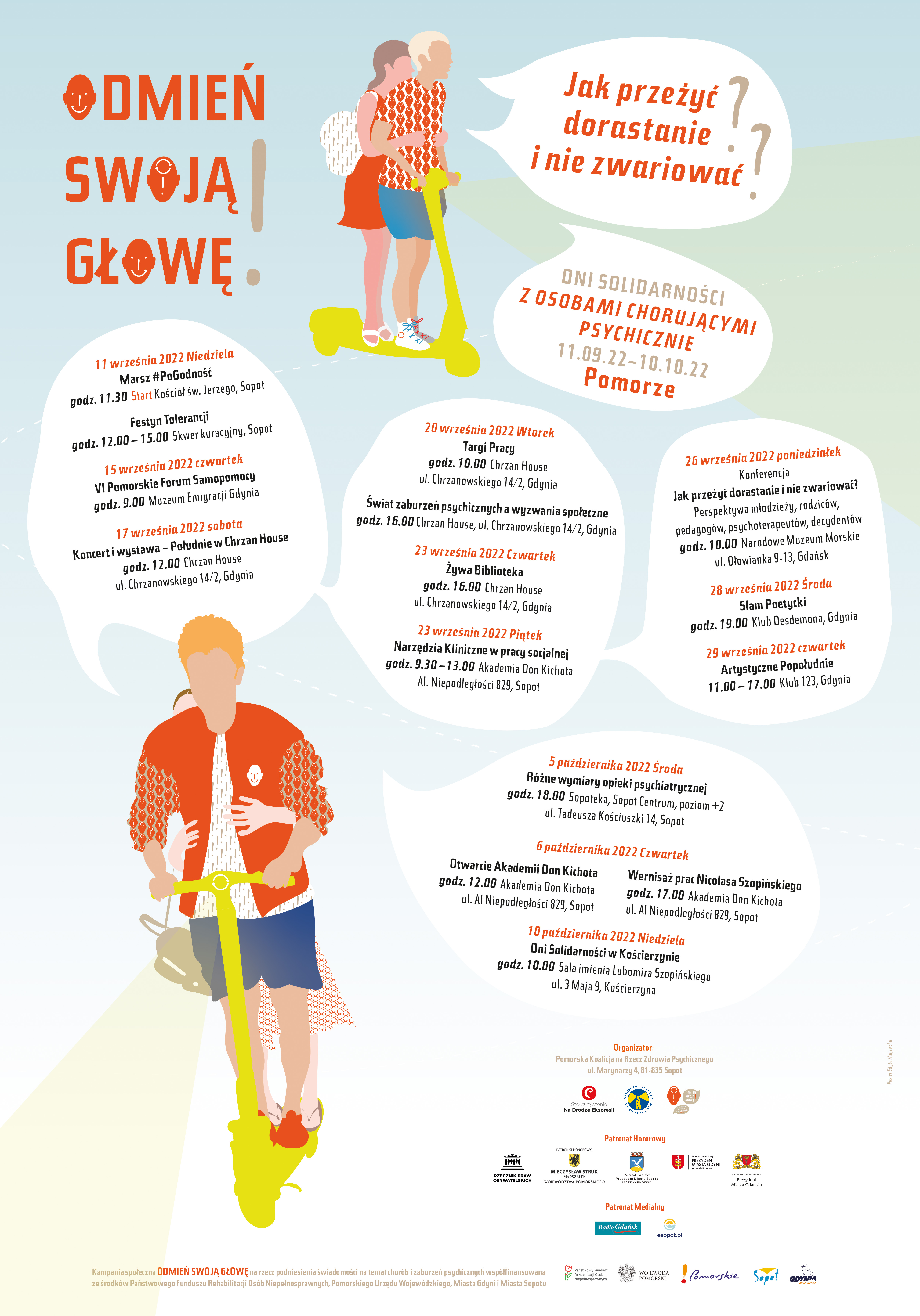 Kampania społeczna ODMIEŃ SWOJĄ GŁOWĘ na rzecz podniesienia świadomości na temat chorób i zaburzeń psychicznych współfinansowana ze środków Państwowego Funduszu Rehabilitacji Osób Niepełnosprawnych, Pomorskiego Urzędu Wojewódzkiego, Miasta Gdyni i Miasta Sopotu.