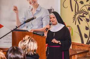 Licznie zgromadzeni uczestnicy konferencji mieli okazję zapoznania się z dobrymi praktykami w dziedzinie funkcjonowania przedsiębiorstw społecznych. Wysiłek włożony w tworzenie spółdzielni, sposób działania, którego efektem jest zadowolenie i samodzielność pracujących w przedsiębiorstwie osób niepełnosprawnych przedstawiła Przełożona Domu Zakonnego Zgromadzenia Sióstr Franciszkanek i jednocześnie prezes spółdzielni, Siostra Grażyna Koźlik.