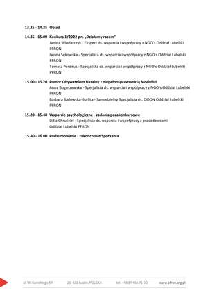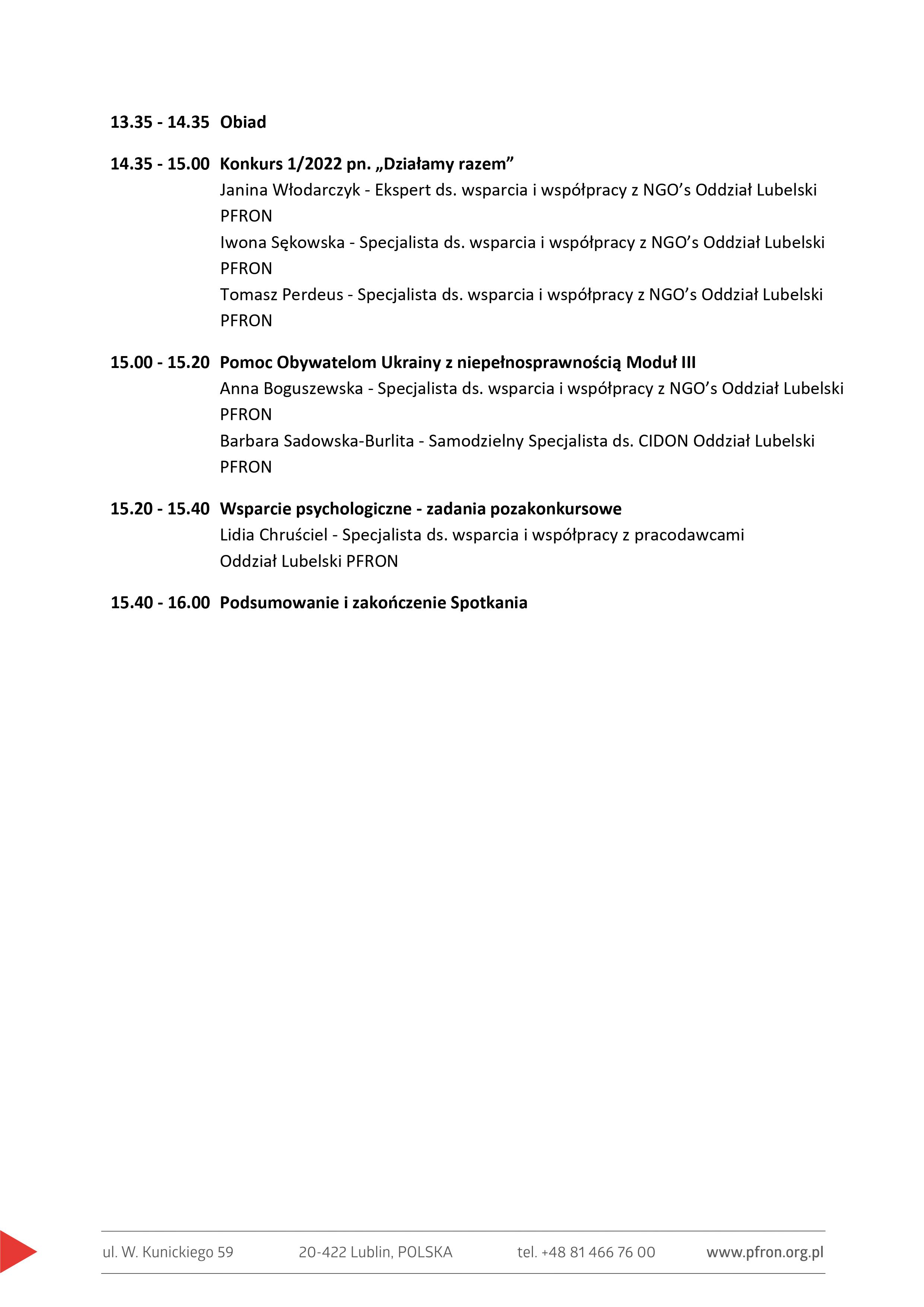 Oddział Lubelski Państwowego Funduszu Rehabilitacji Osób Niepełnosprawnych wraz z Centrum informacyjno-doradczym dla osób z niepełnosprawnością (CIDON) utworzonym przy Oddziale Lubelskim PFRON organizuje kolejne spotkanie sieciujące pn.: „Dobre praktyki w kontaktach z osobami z niepełnosprawnościami”.
