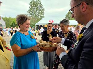 W niedzielę 7 września w Cycowie, odbyły się dożynki powiatu łęczyńskiego. Wśród zaproszonych gości była Monika Wac Dyrektor Oddziału Lubelskiego Państwowego Funduszu Rehabilitacji Osób Niepełnosprawnych. Pani Dyrektor w swoim wystąpieniu podziękowała rolnikom za trud włożony w zaspokojenie jednej z najważniejszych potrzeb życiowych naszych obywateli jaką jest żywność. Liczna obecność mieszkańców, prezentacja artystyczna gmin, promocja oryginalnych produktów lokalnych nadaje sens corocznej organizacji dożynek i wynagradza trud przygotowania uroczystości.