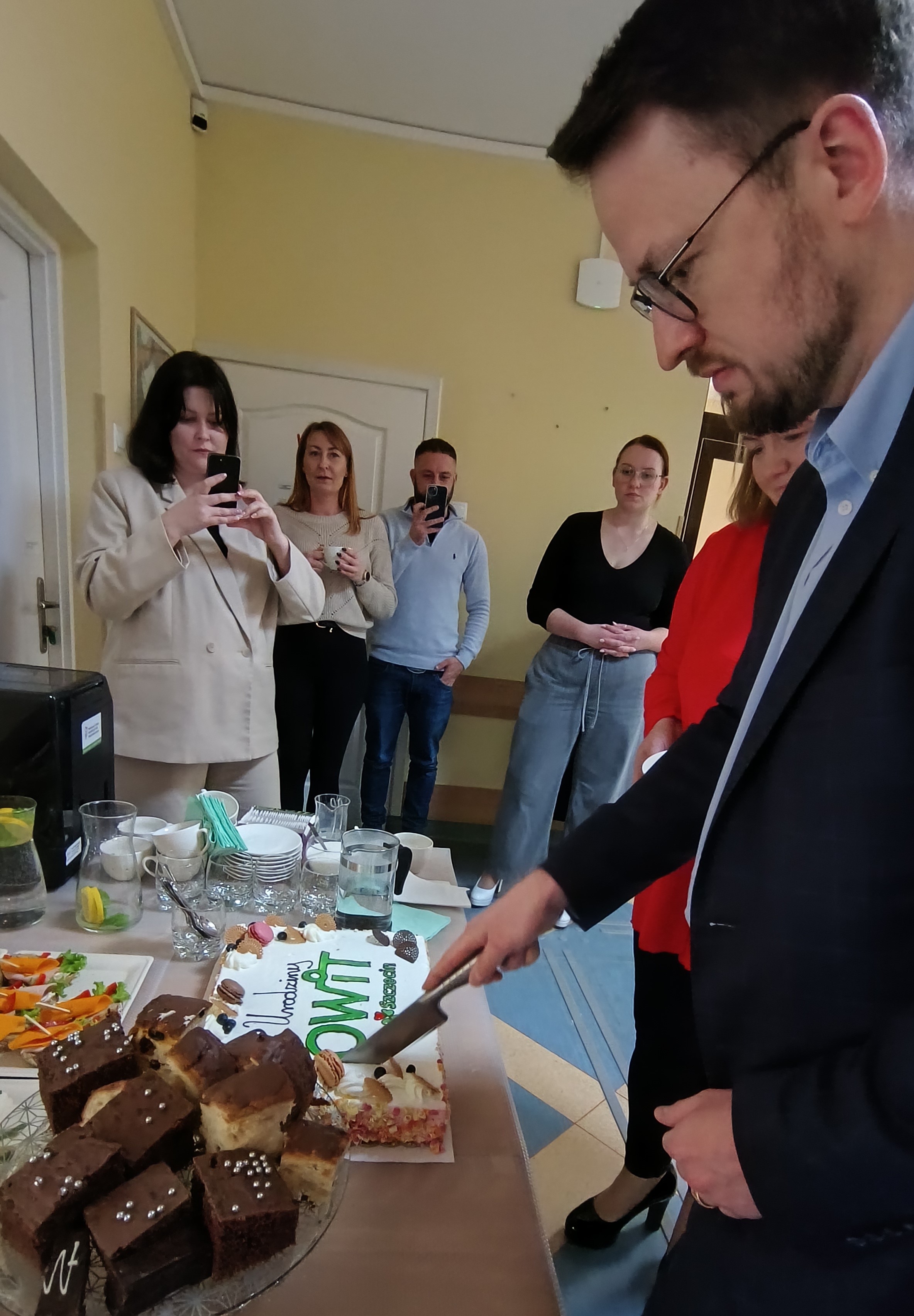Głównym punktem uroczystości było pokrojenie tortu, którego dokonał dyrektor Oddziału Zachodniopomorskiego Państwowego Funduszu Rehabilitacji Osób Niepełnosprawnych – Bartosz Baszczyński.