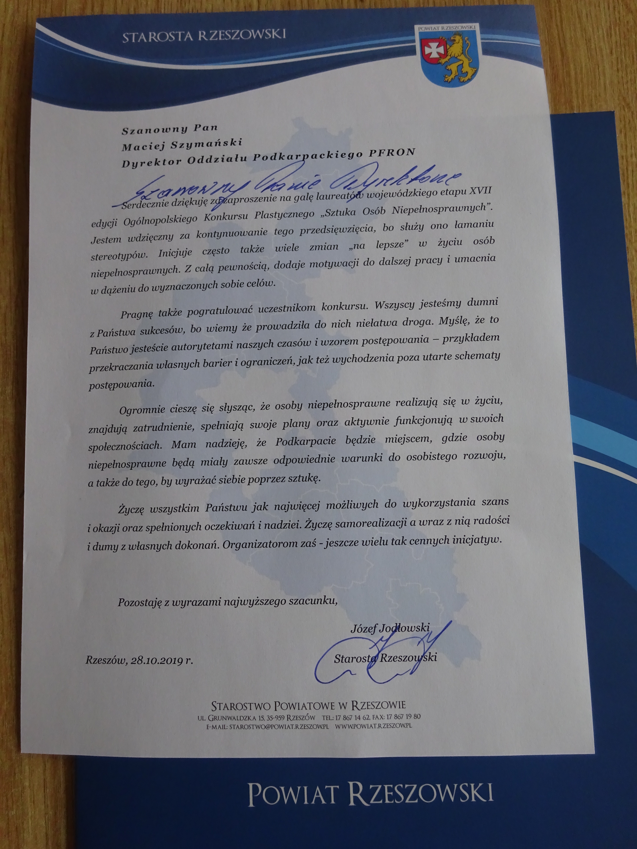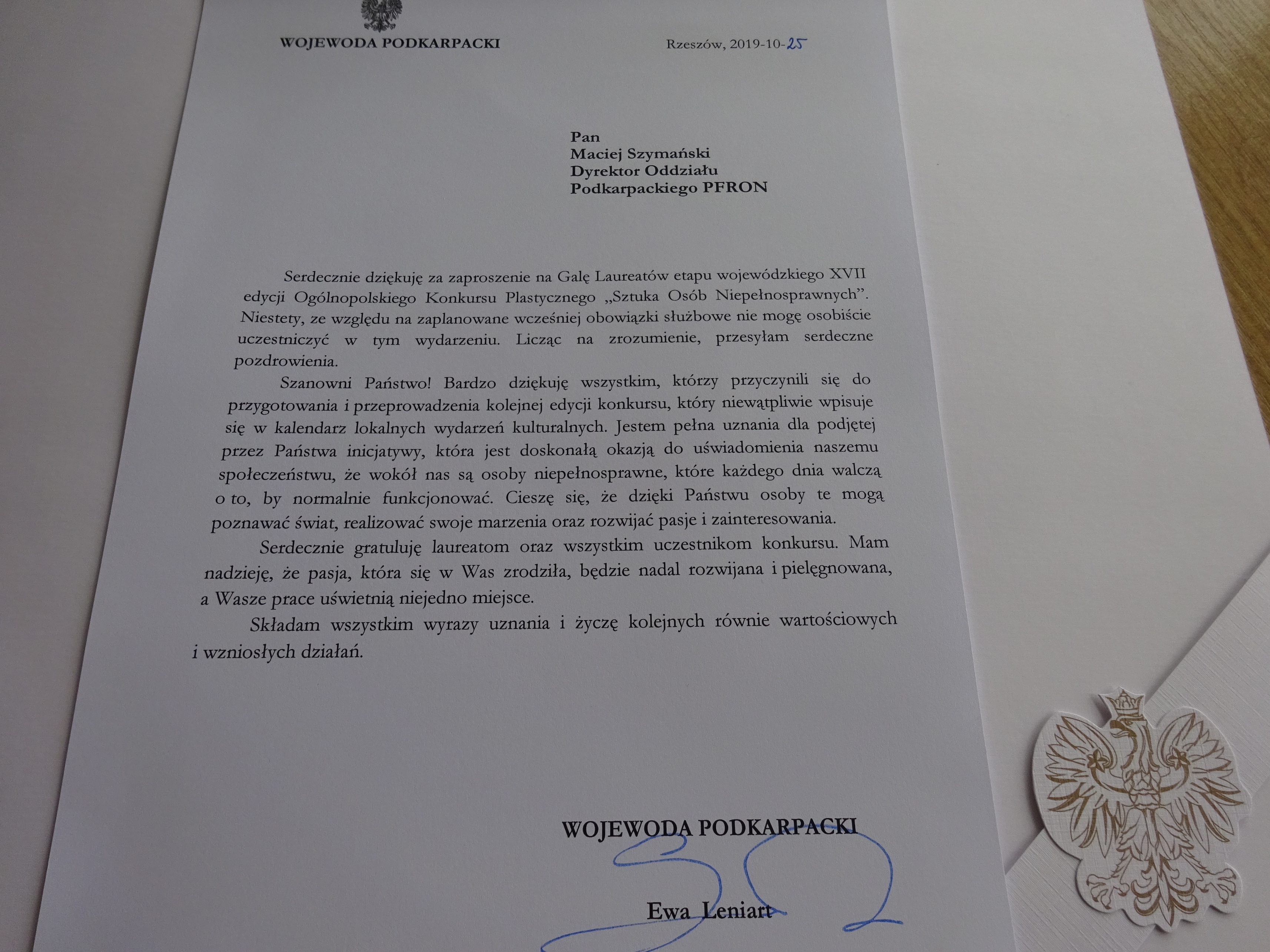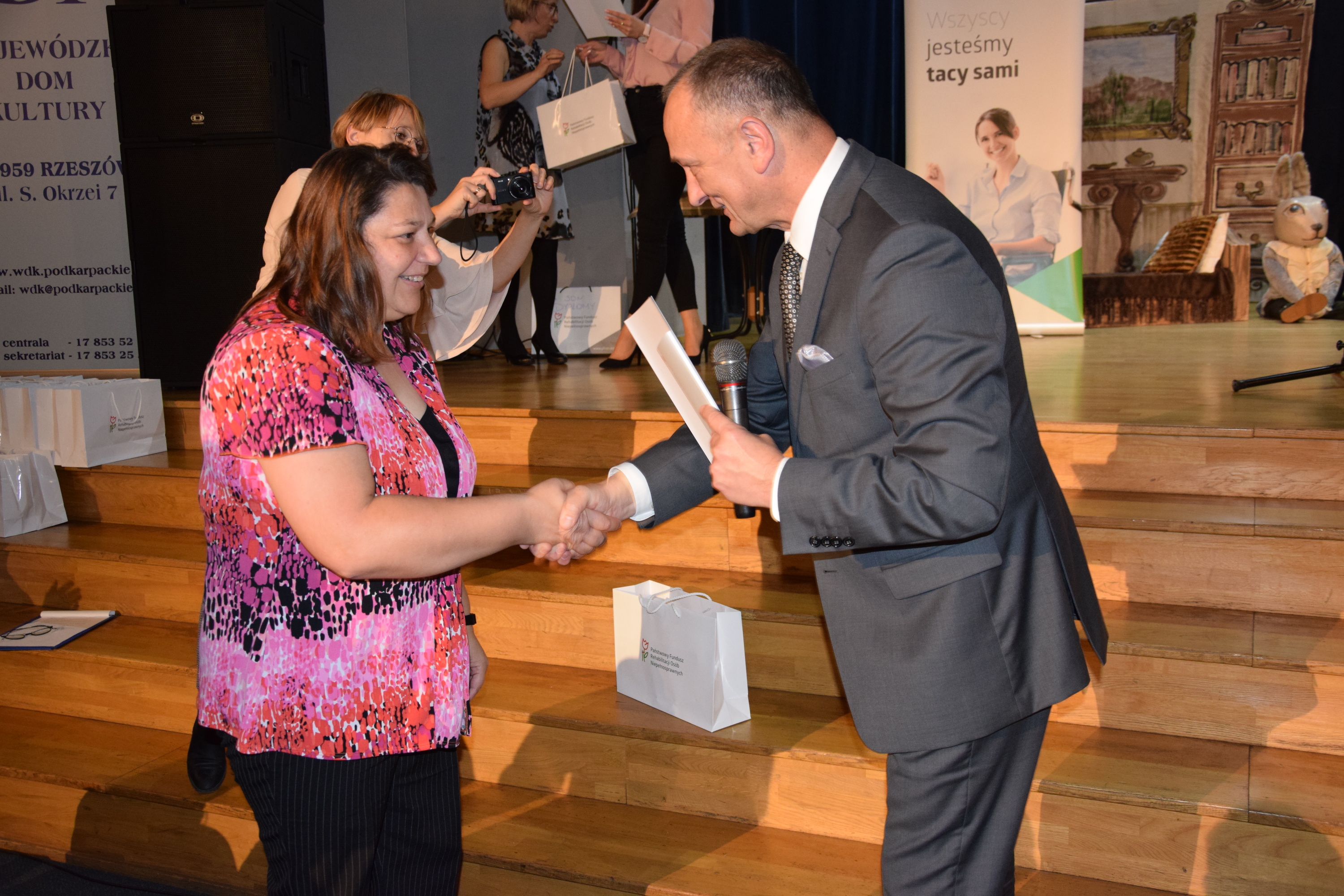 Uroczystość mogła mieć miejsce dzięki niecodziennej wrażliwości i zaangażowaniu Dyrekcji WDK w osobach Małgorzaty Hołowińskiej i Marka Jastrzębskiego i nieocenionej pomocy ich Pracowników. Wśród licznej widowni zasiedli Małgorzata Dankowska Dyrektor Wydziału Polityki Społecznej Podkarpackiego Urzędu Wojewódzkiego oraz Wicestarosta Rzeszowski Marek Sitarz.