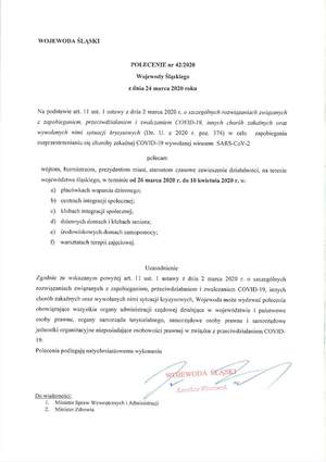 Na podstawie Polecenia nr 42/2020 Wojewody Śląskiego z dnia 24 marca 2020 roku, czasowo zostaje zawieszona działalność w terminie od dnia 26 marca 2020 r. do dnia 10 kwietnia 2020 r. w: