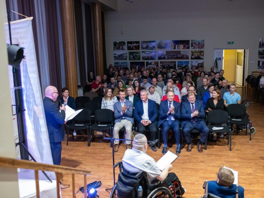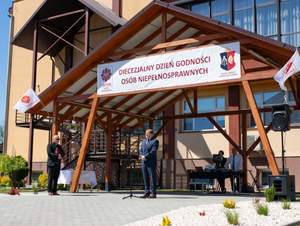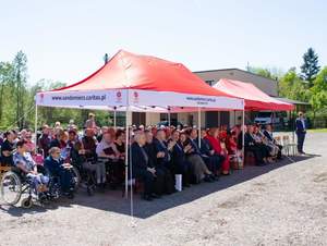 Po tym niezwykle emocjonalnym i pełnym skupienia przedstawieniu zebrani udali się na plac Centrum Caritas by uczestniczyć w radosnym świętowaniu Dnia Godności Osób z Niepełnosprawnością oraz w momencie poświęcenia busa, którym uczestnicy WTZ dowożeni będą na codzienne zajęcia.