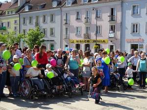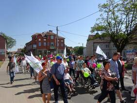 W piękny słoneczny dzień 10 maja br. w Biskupcu Dzień Godności Osoby z Niepełnosprawnością Intelektualną odbył się bardzo uroczyście. Z Placu Wolności przy dźwiękach skocznej muzyki wykonanej przez orkiestrę Uniwersytetu Warmińsko-Mazurskiego i aplauzie widzów przez ulice miasta przeszedł barwny korowód osób z niepełnosprawnościami, zaproszonych gości i mieszkańców Biskupca. Pochód zakończył się w placówce prowadzonej przez inicjatora przedsięwzięcia - Polskiego Stowarzyszenia na Rzecz Osób z Niepełnosprawnością Intelektualną w Biskupcu - Centrum Rehabilitacyjno-Edukacyjno-Zawodowym przy ul. Żółkiewskiego. Tamże został zorganizowany integracyjny plener urozmaicony występami artystycznymi osób z niepełnosprawnością, wystawą prac i masek uczestników PSONI, a także poczęstunkiem. W imprezie wzięli udział m.in. członkowie i uczestnicy PSONI w Biskupcu, Nidzicy, Ostródy i Dobrego Miasta, Wicemarszałek Województwa Warmińsko-Mazurskiego, przedstawiciel Wojewody Warmińsko-Mazurskiego, Starosta Powiatu Olsztyńskiego, Burmistrz Biskupca, pracownicy Warmińsko-Mazurskiego Oddziału Państwowego Funduszu Rehabilitacji Osób Niepełnosprawnych. W uroczystościach uczestniczyło ponad tysiąc osób.