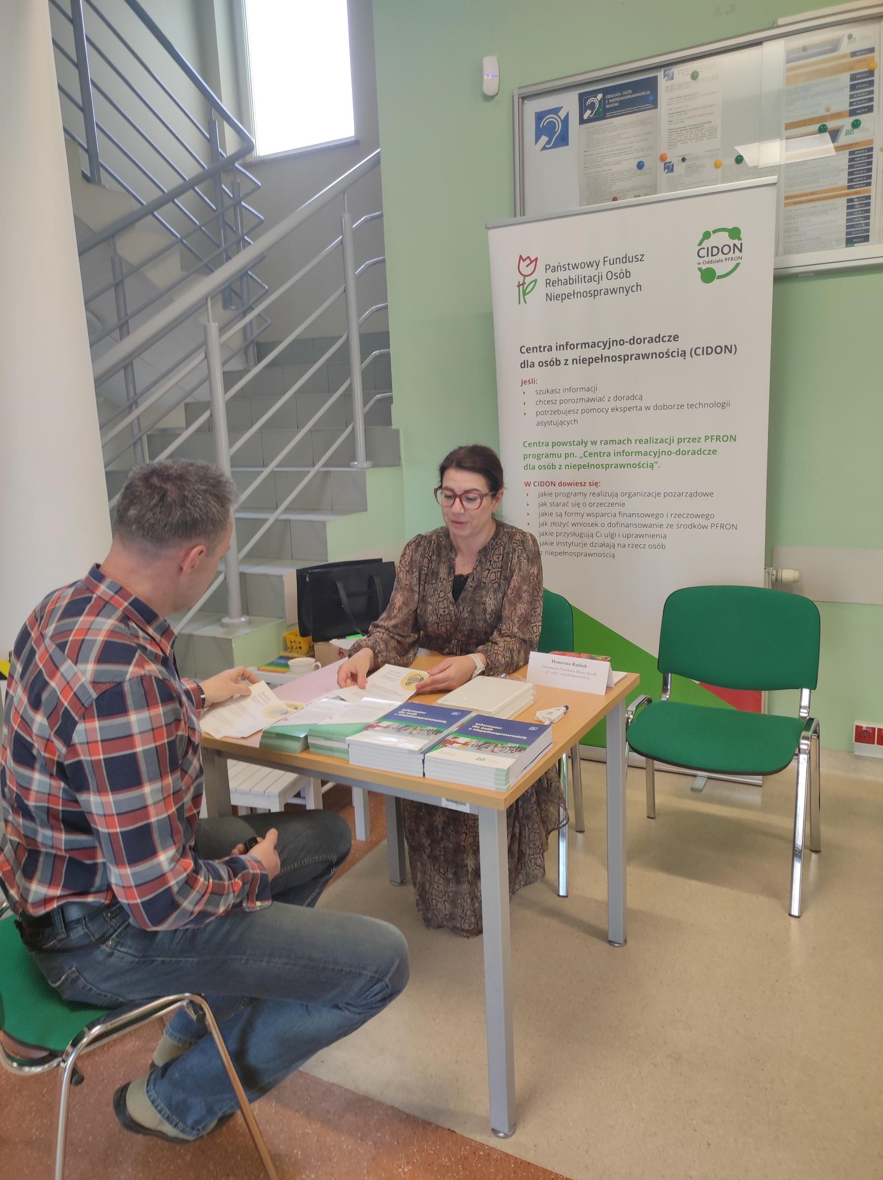 Przedstawicielka PFRON udzielała indywidualnych porad dotyczących dofinansowań, procedur orzeczniczych, ulg i uprawnień, a także turnusów rehabilitacyjnych i aktualnych programów wsparcia Funduszu.