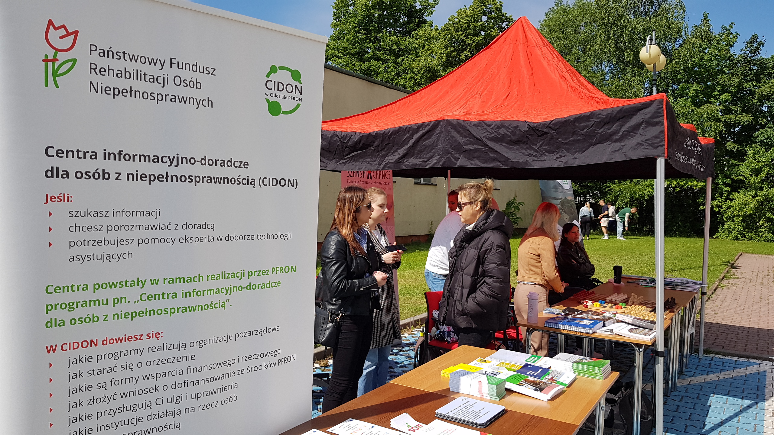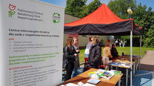 7 maja br. Centrum Wsparcia Osób z Niepełnosprawnościami na Uniwersytecie Jana Kochanowskiego w Kielcach, w Miasteczku Studenckim przy domu „Odyseja” zorganizowało „Dzień otwarty dla osób z niepełnosprawnościami”. Uczestnicy wydarzenia mogli wziąć udział w warsztatach języka migowego, zagrać w bule, nauczyć się udzielania pierwszej pomocy, a także wziąć udział w grze terenowej. Przedstawiciele Oddziału PFRON przy swoim stanowisku informacyjnym, udzielali porad a także promowali „Centrum informacyjno - doradcze dla osób z niepełnosprawnością”. Zachęcali wszystkich zainteresowanych do skorzystania z oferty CIDON, którego celem jest wszechstronna pomoc osobom z niepełnosprawnościami, które nie wiedzą gdzie szukać pomocy w rozwiązywaniu swoich problemów.