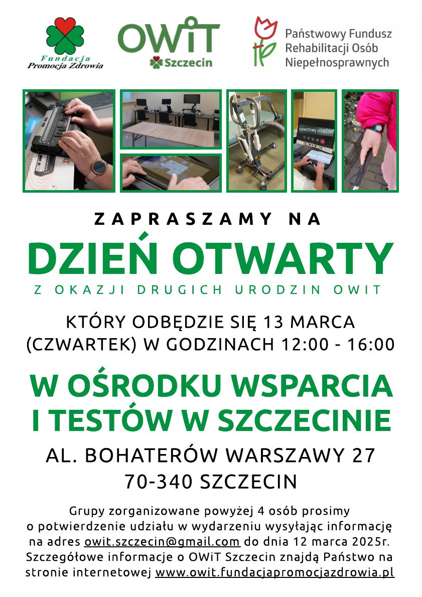 Wydarzenie odbędzie się w siedzibie OWiT przy al. Bohaterów Warszawy 27 w Szczecinie. To doskonała okazja, aby poznać nowoczesne rozwiązania technologiczne wspierające osoby z niepełnosprawnościami, zobaczyć sprzęt rehabilitacyjny oraz porozmawiać z ekspertami.