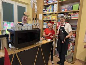 Tego dnia dla odwiedzających specjalne otwarto kawiarnię „Pod sztalugą”, gdzie goście mogli spróbować aromatycznej kawy zaparzonej przez profesjonalnego baristę i zjeść jedno z kilku warsztatowych wypieków. W ramach programu odbył się również kiermasz świąteczny, oferujący rękodzieło wykonane w pracowniach przez uczestników warsztatu, a także specjalne kino WTZ w którym można było zobaczyć film z okazji 25-lecia istnienia placówki.