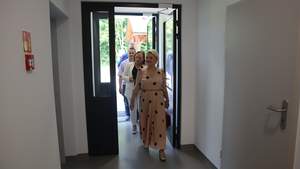 Wizyta rozpoczęła się od spotkania na terenie budowy Wspomaganych Społeczności Mieszkaniowych (WSM) w Gralewie w Gminie Santok w której oprócz Dyrektor Oddziału Lubuskiego PFRON Elżbiety Miernik-Krukurki wzięli udział Prezes Fundacji Stephanus Maciej Korczyński, a także Koordynator Zakładu Aktywności Zawodowej w Kamieniu Wielkim Julita Karasińska oraz przedstawiciele władz samorządowych: Starosta Gorzowski Krzysztof Karwatowicz, Wójt Gminy Santok Józef Ludniewski, Zastępca Wójta Gminy Santok Magdalena Nowak oraz Burmistrz Witnicy Agnieszka Chudziak.