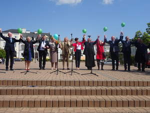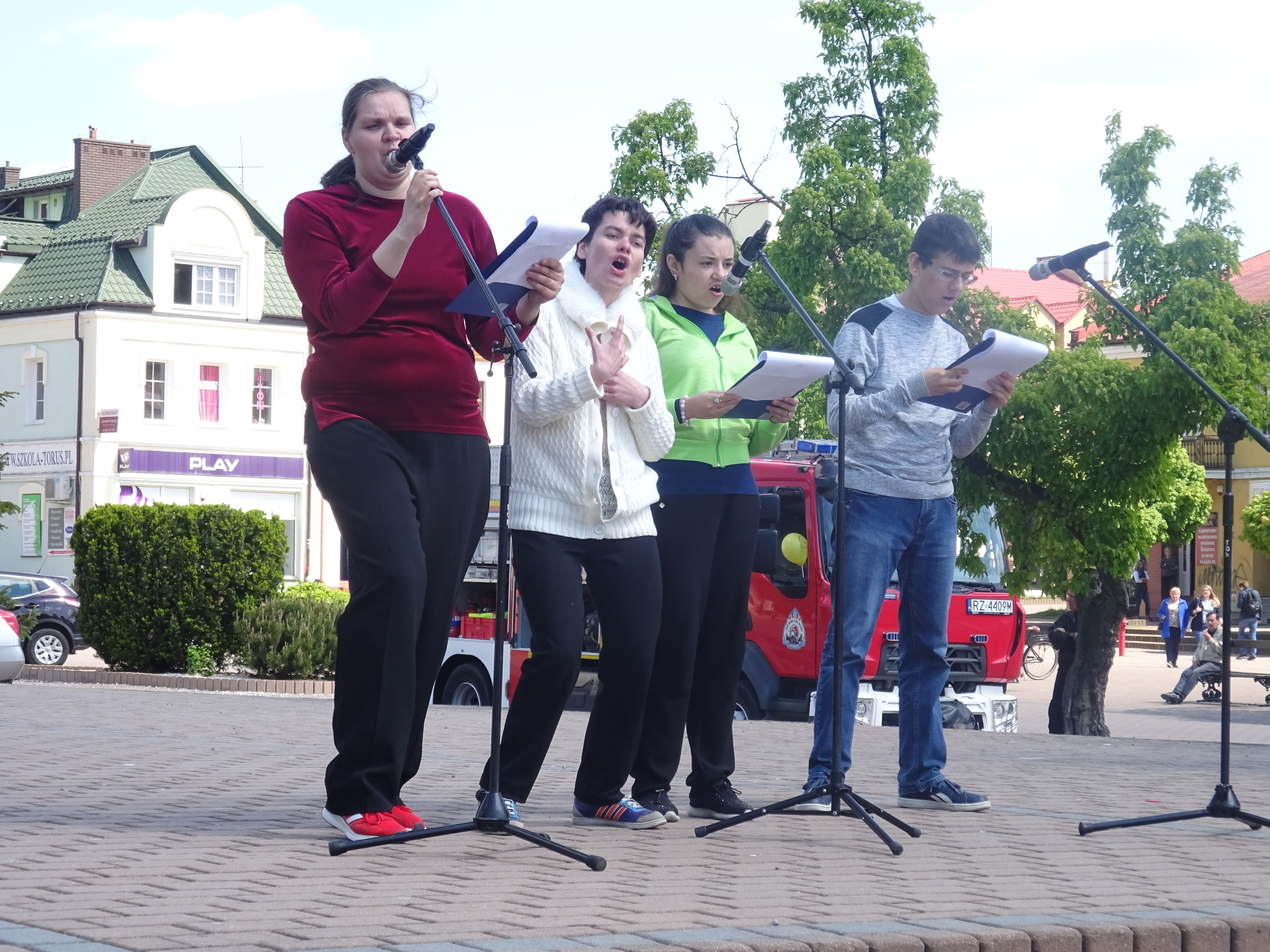 Po Mszy św. w Kościele Chrystusa Króla w Tarnobrzegu przeszliśmy w kierunku Placu Bartosza Głowackiego. Tutaj, po złożeniu kwiatów pod pomnikiem bohatera, miało miejsce wspólne, radosne świętowanie podopiecznych warsztatów terapii zajęciowej, domów samopomocy oraz placówek edukacyjnych i rehabilitacyjnych z Tarnobrzega i powiatu tarnobrzeskiego.