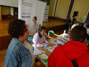 Przedstawiciele Państwowego Funduszu Rehabilitacji Osób Niepełnosprawnych podczas Targów Pracy przekazywali informacje o przywilejach oraz wsparciu przysługującym osobom z niepełnosprawnością ze środków PFRON, m.in. w ramach programu pn.: „Aktywny Samorząd”, realizowanego przez powiatowe centra pomocy rodzinie oraz miejskie ośrodki pomocy rodzinie.
