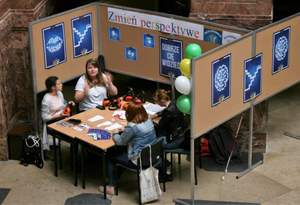 Przez cały dzień zainteresowani mieli możliwość zapoznania się ze sprzętem wspomagającym korzystanie z zasobów bibliotecznych, jaki oferuje dla studentów z niepełnosprawnością wzroku wydziałowa biblioteka.