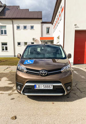 Dowóz do szkół i placówek rehabilitacyjnych świadczyli głównie rodzice osób niepełnosprawnych. 9-osobowy pojazd marki Toyota został zakupiony w ramach realizacji projektu PFRON ,,Program wyrównywania różnic między regionami III”.