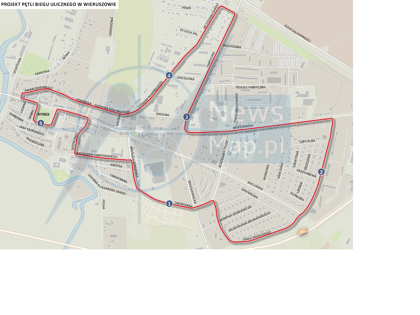 W załączeniu trasa biegu ulicznego w Wieruszowie