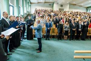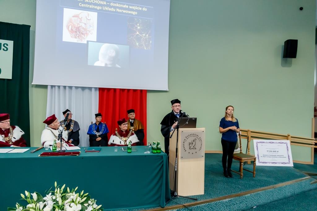Po uroczystej immatrykulacji studentów oraz doktorantów rozpoczynających naukę na I roku studiów z wykładem inauguracyjnym pt. "Słuch w rozwoju człowieka” wystąpił prof. dr. hab. med. dr h.c. multi Henryk Skarżyński, dyrektor Instytutu Fizjologii i Patologii Słuchu oraz Światowego Centrum Słuchu w Kajetanach. Polska należy do czołówki krajów wdrażających nowe osiągnięcia w dziedzinie implantów ślimakowych.