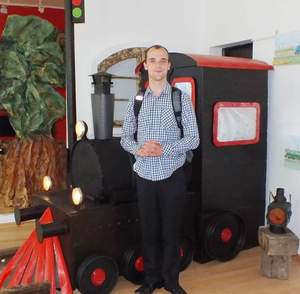 Autor jest mieszkańcem Łopatek i podopiecznym Warsztatu Terapii Zajęciowej w Wąbrzeźnie. Swoje zamiłowanie do kolejnictwa oraz drzew przekazuje poprzez rysunek techniczny, rysując kredkami, długopisem i ołówkiem - z wielką precyzją i dokładnością odwzorowuje każdy szczegół i detal.