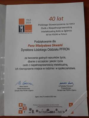 W uroczystościach jubileuszowych uczestniczył Władysław Skwarka, dyrektor Łódzkiego Oddziału Państwowego Funduszu Rehabilitacji Osób Niepełnosprawnych oraz władze samorządowe.