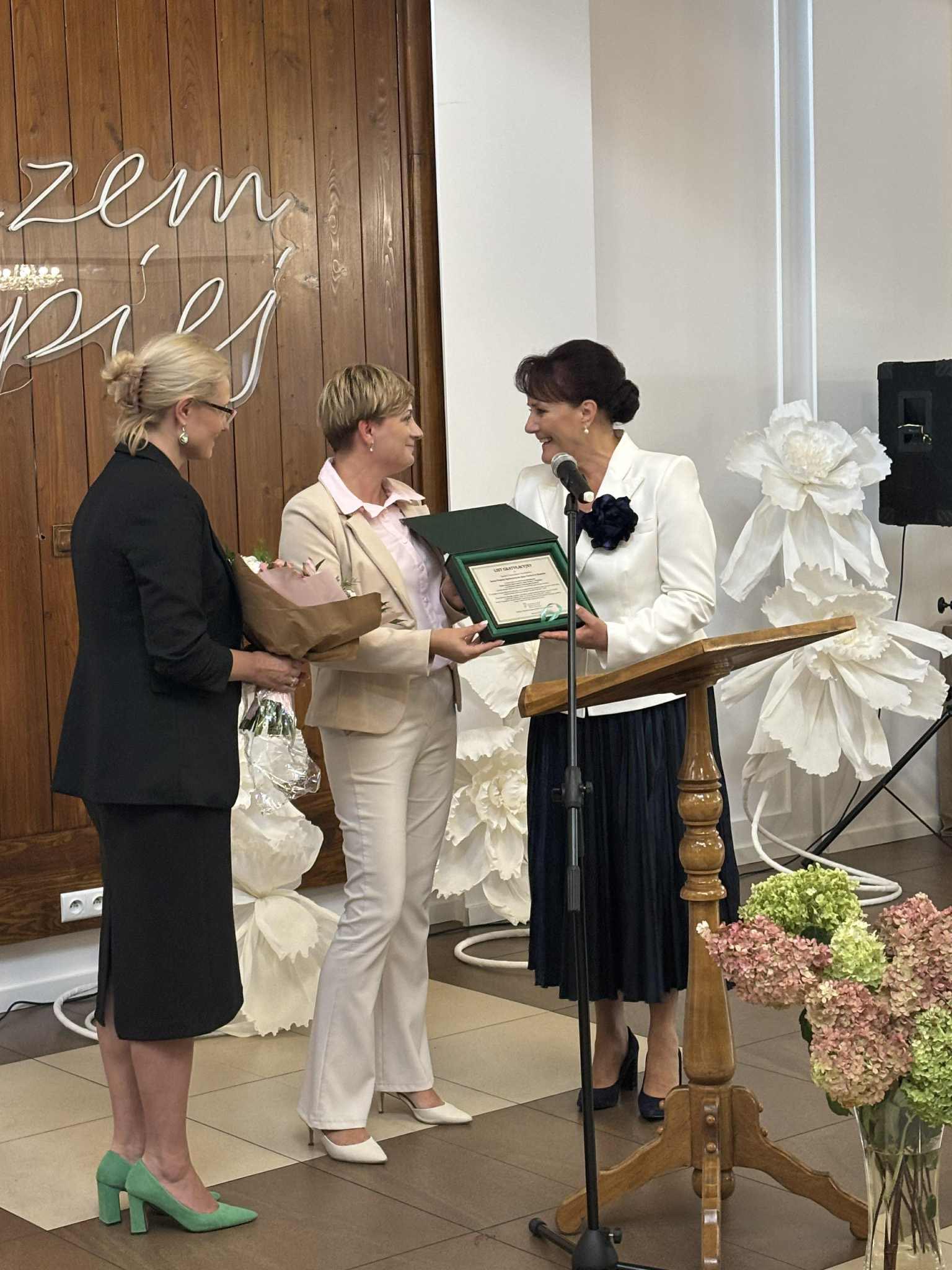 W wydarzeniu uczestniczyły także Edyta Kondzior – Dyrektor Oddziału Podlaskiego Państwowego Funduszu Rehabilitacji Osób Niepełnosprawnych oraz Urszula Kierznowska – Starszy Ekspert ds. wsparcia i współpracy z NGO. Z tej okazji Dyrektor Oddziału Podlaskiego PFRON przekazała na ręce dyrektor placówki, Anny Klinickiej, grawerton oraz kwiaty jako wyraz uznania dla pięćdziesięcioletniej działalności DPS na rzecz osób wymagających szczególnej troski.