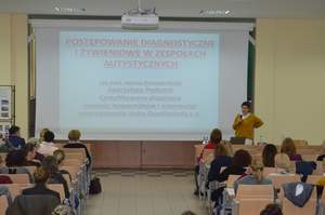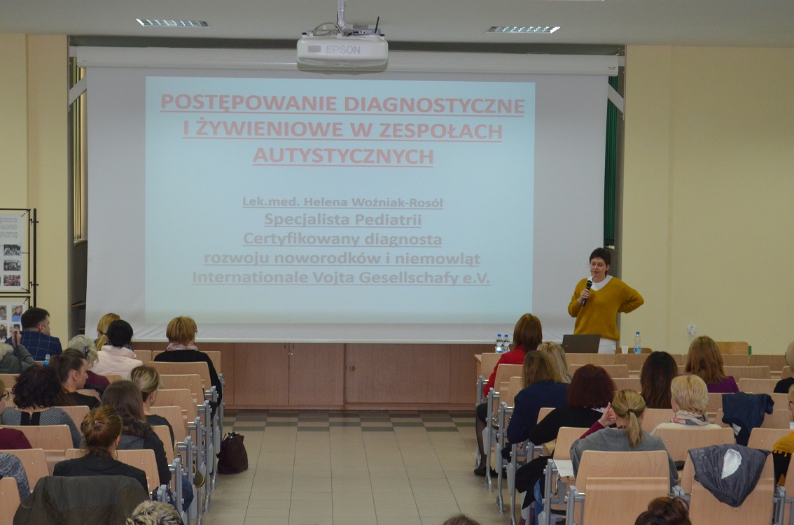Wydarzenie odbyło się w sobotę 16 marca br. w Instytucie Technicznym PWSZ. W spotkaniu udział wzięło ponad 250 nauczycieli, terapeutów, studentów kierunków pedagogicznych oraz rodziców poszukujących pomocy dla swoich dzieci. Wystąpili specjaliści, którzy od wielu lat pracują z dziećmi. Pediatra lek. med. Helena Woźniak – Rosół poruszała zagadnienia postępowania diagnostycznego i żywieniowego w zespołach autystycznych. O nowych technologiach wykorzystywanych podczas diagnozowania zaburzeń autystycznych mówili Dr Elżbieta Lubińska – Kościółek wraz z mgr Krzysztofem Wołoszczukiem.