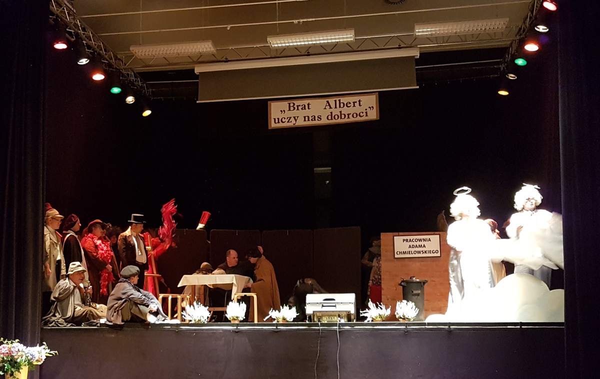 Wydarzenie rozpoczęło się od Mszy św. podczas której Ksiądz Biskup Jan Szkodoń poświęcił kamień węgielny. Uroczystość swoim spektaklem o św. Bracie Albercie uświetnił Teatr „Radwanek”. Teatr działa w podkrakowskich Radwanowicach. To grupa dorosłych osób niepełnosprawnych intelektualnie, podopiecznych Fundacji Anny Dymnej „Mimo Wszystko” oraz Fundacji im. Brata Alberta, które na co dzień uczestniczą w zajęciach ośrodka terapeutyczno-rehabilitacyjnego „Dolina Słońca”.